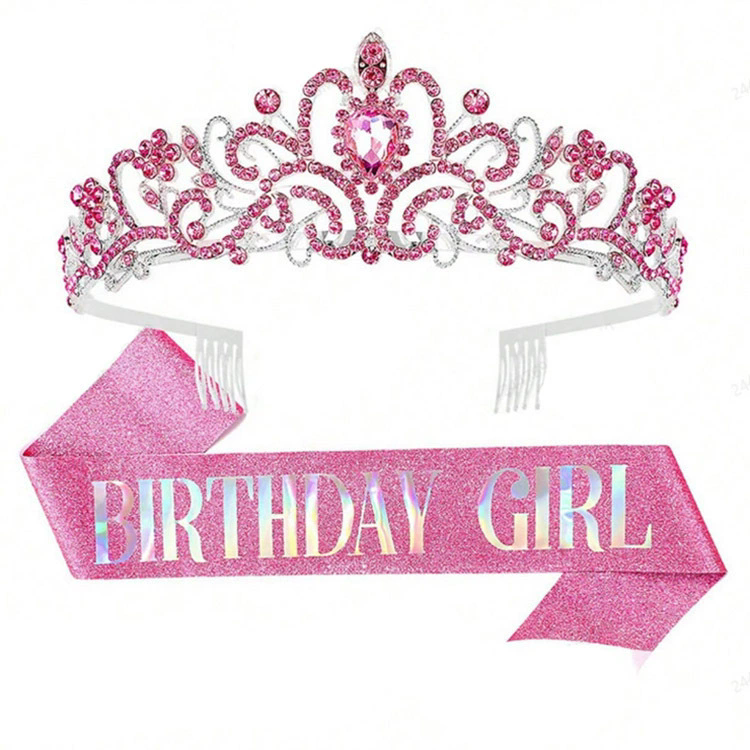 Item name: Best selling silver foiled font birthday girl and birthday queen Pink glitter sash and tiara crown kit for women’s happy birthday party