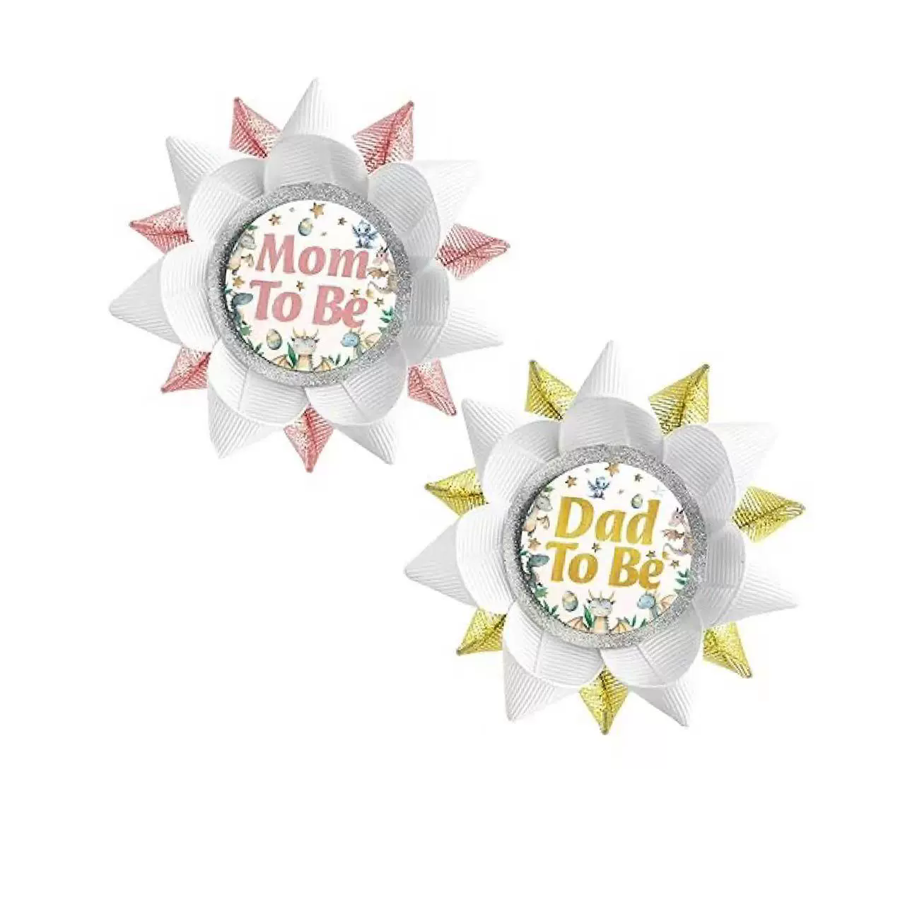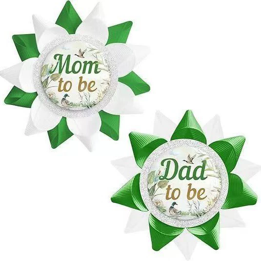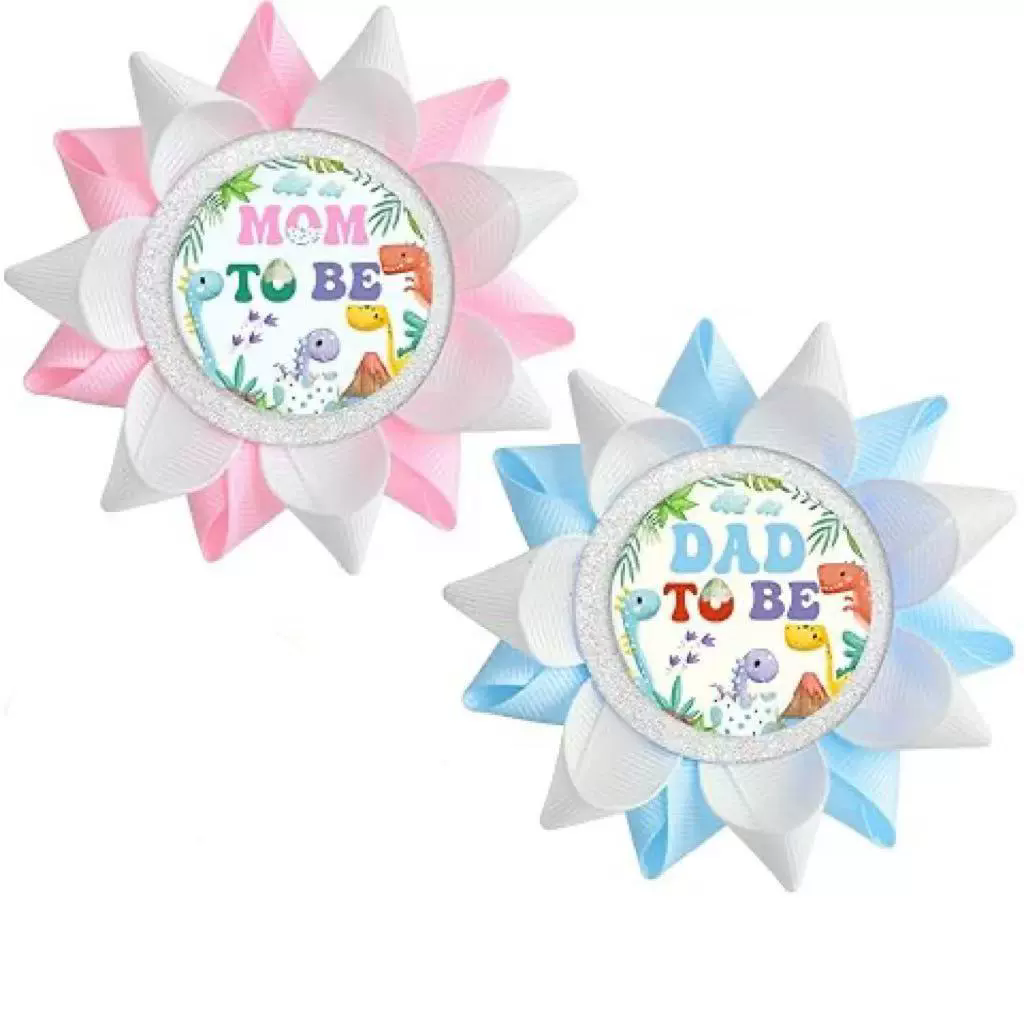 Item: Wholesale manual Grosgrain Ribbon Pins Mom to be Dad to be Button Team boy team girl Tinplate badge Pins for boy or girl baby shower party
